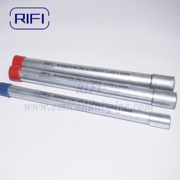 | Technical Specifications | Material: Galvanized Iron. Standard: BS4568. Class: 4 (heavy-duty galvanization). Coating: Hot-dip galvanized. Diameter Range: Various (commonly from 20mm to 50mm). Length: Typically 3-4 meters (custom lengths available). Color: Metallic silver. Length: 3.75 Meters. Trademark: RIFI. Connection Type: Threaded. |